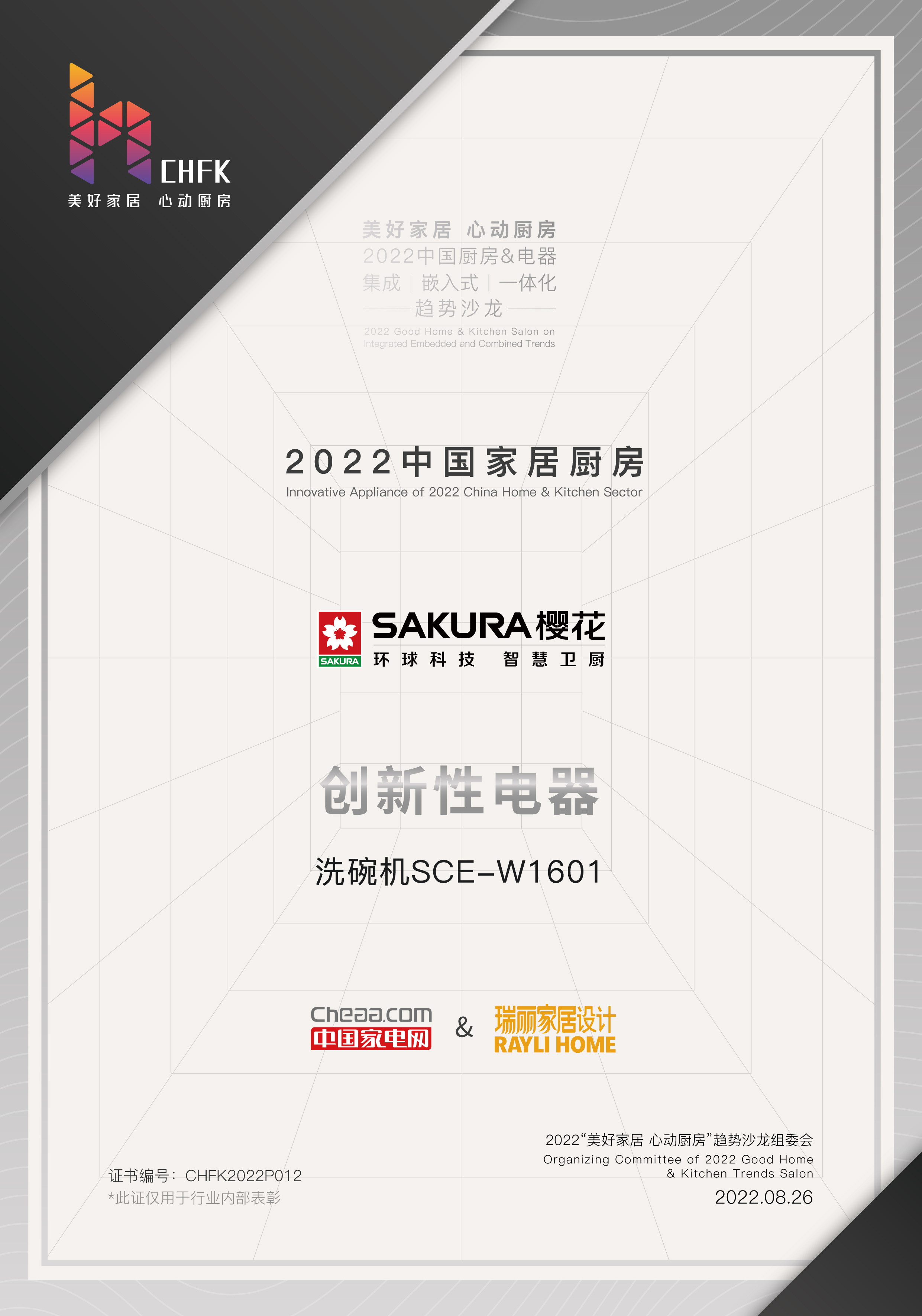 8月26日,为进一步激发市场消费潜能,推动厨电行业高质量发展,由中国家用电器协会、中国家电网、瑞丽家居联合举办,2022中国厨房&电器“集成、 嵌入式、 一体化”趋势沙龙,在哈尔滨举行。SAKURA天富平台登录注册以出色的表现斩获三项殊荣——“2022中国家居厨房先进性电器”、“2022中国家居厨房创新性电器”、“2022中国家居厨房品质型电器”。