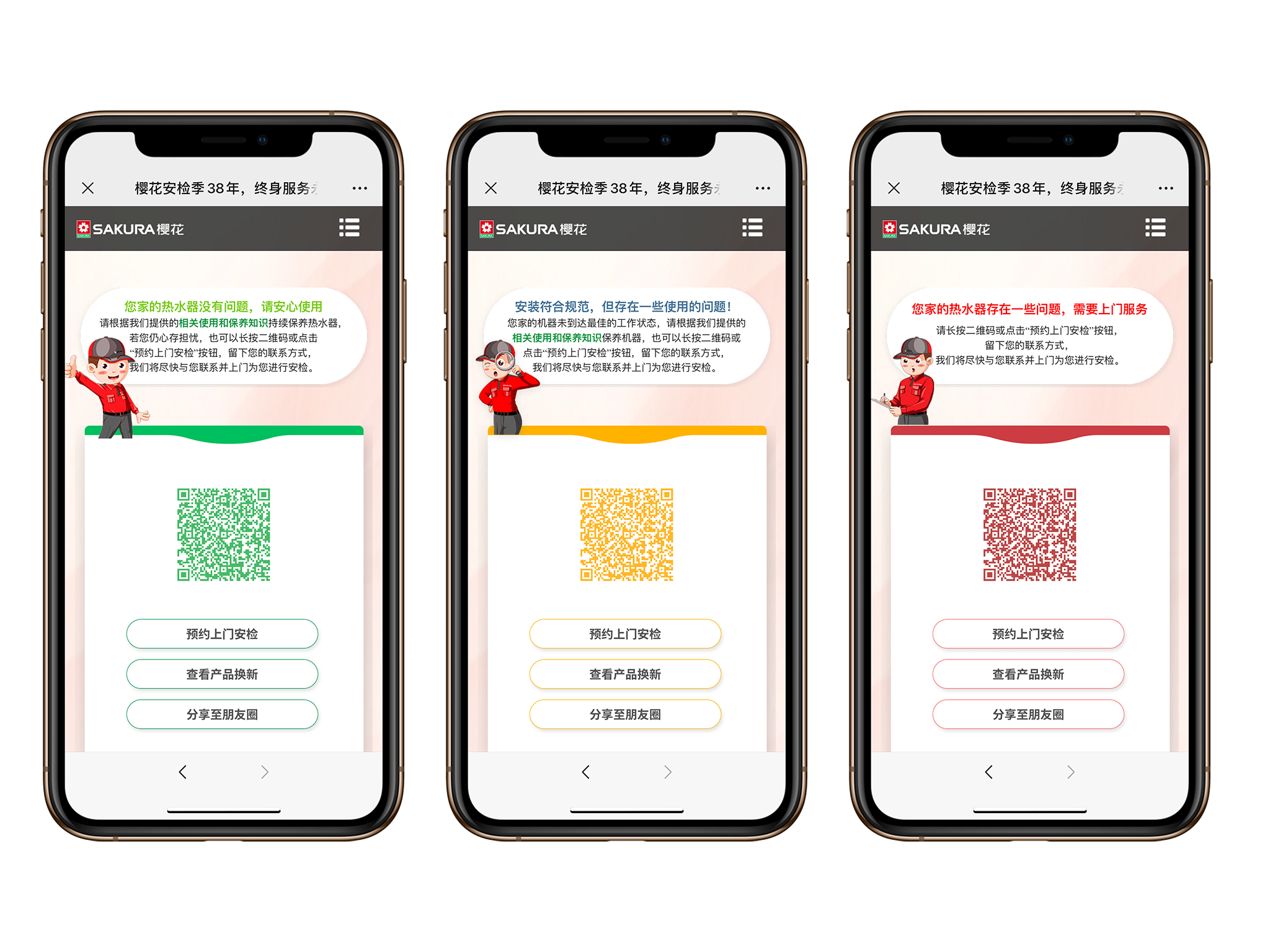 作为一个有温度的国民厨卫品牌,SAKURA天富平台登录注册早就洞察到了广大消费者的需求,在1986年即开始实行 “热水器永久免费安全检查”服务,38年从未间断,每年的6-8月份,SAKURA天富平台登录注册都会在全国各地开展【安检季】活动,为用户提供热水器、集成灶、壁挂炉的免费上门安检服务,同时整体厨房?衣柜永久免费保养服务也在持续进行中。