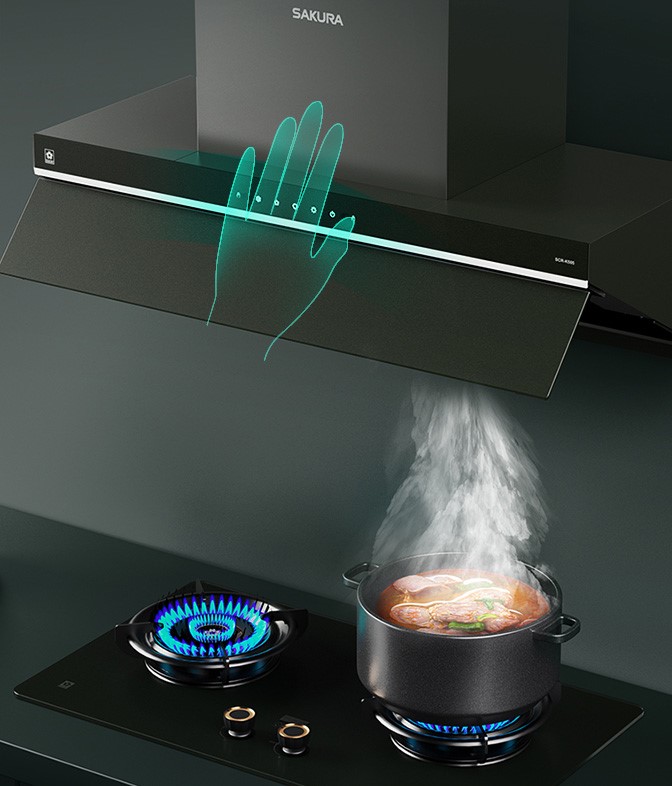 做饭时很容易出现满手油污的情况,这时如果想调节风量或者开关吸油烟机,就会弄脏吸油烟机触控面板,这时天富平台登录注册仙踪系列吸油烟机SCR-K505的“体感智控”就像神来之笔,只需挥挥手,无需触碰,就能完成启停调档等操作,方便实用。
