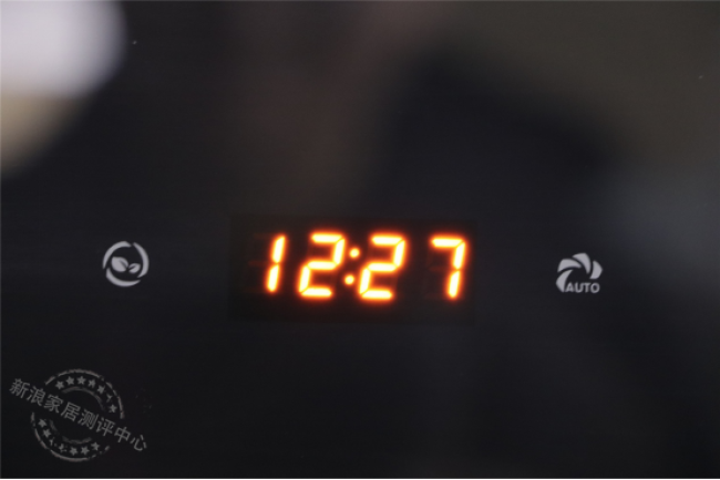 插上电源线后,屏上显示实时时间!接下来就是见证奇迹的时刻了!烟机自动打开面板,不用时会自动关闭,可以有效防止油烟倒灌问题!所谓零动就是绝对的零手动哦!只要人站在烟机前面400*655mm范围内3秒,在面板上的两个红外感应探头的做功下,油烟机将自动启动开启最低档工作模式!