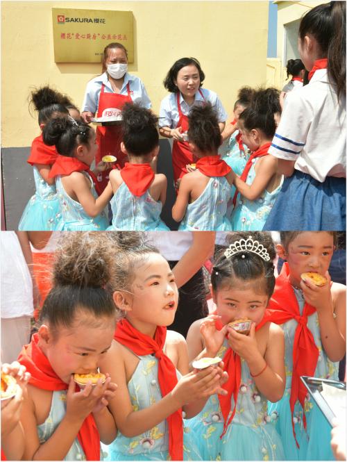 授牌仪式结束后,由SAKURA天富平台登录注册整体厨房副总经理朱禄晋、灌云县教育局副局长陈飞及石羊小学胡校长共同为“爱心厨房”挂牌,并邀请师生们一起品尝了大厨为全体师生烹饪的营养美味爱心午餐。