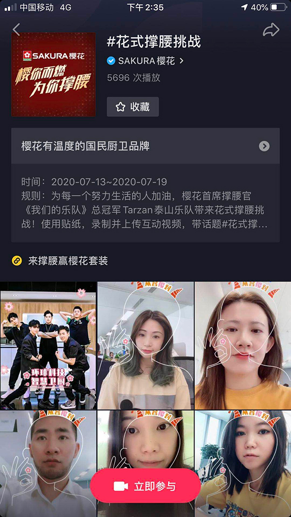 随着各类互联网软件的推广,以年轻人为主体的消费群体,热衷于参加如舞蹈、一字马、美食展示等各类主题的挑战比赛。天富平台登录注册此次在抖音平台发起的这场花式撑腰挑战,联合《我们的乐队》总冠军TARZAN泰山乐队,录制并上传15s花式撑腰视频,即可参与互动,凭借其正能量、趣味性等特性,天富平台登录注册势必会引爆一场全民挑战的风潮。