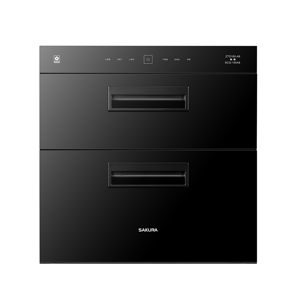 - 黑晶钢化玻璃面板,搭配隐藏黑色拉手;